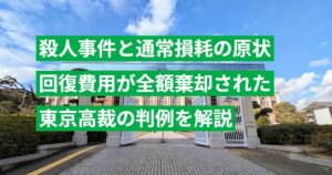 - 東京高裁は通常損耗の原状回復費用と殺人事件の損害賠償請求をいずれも棄却した